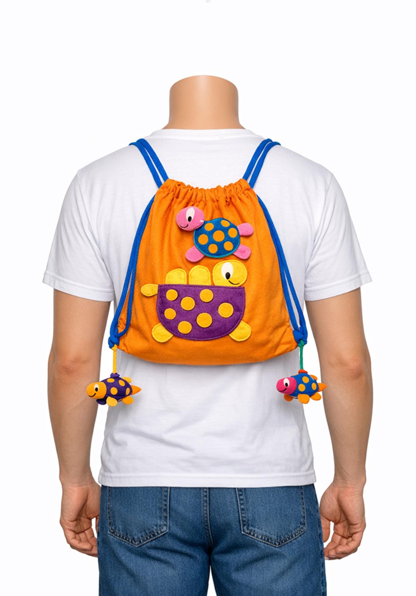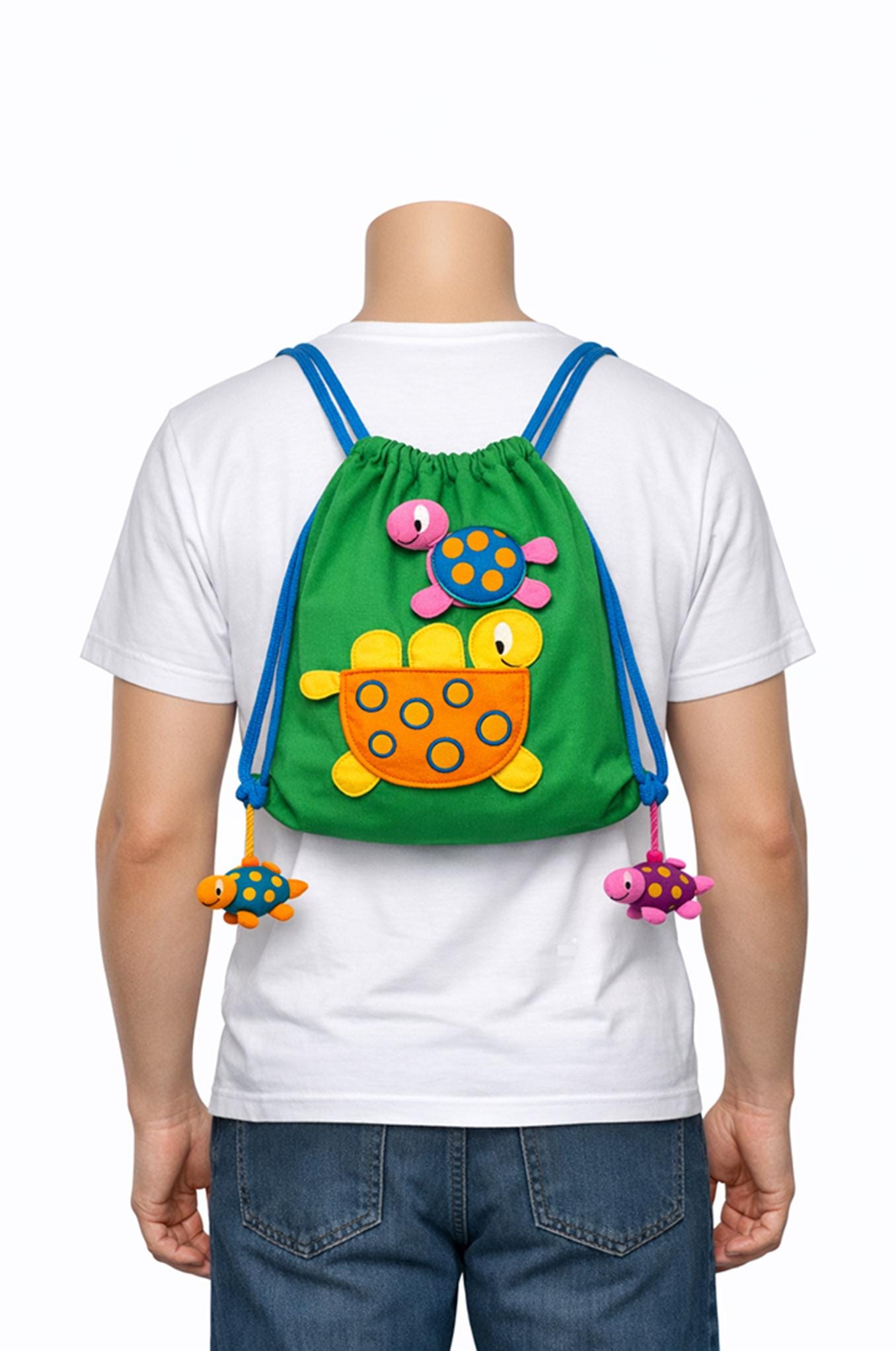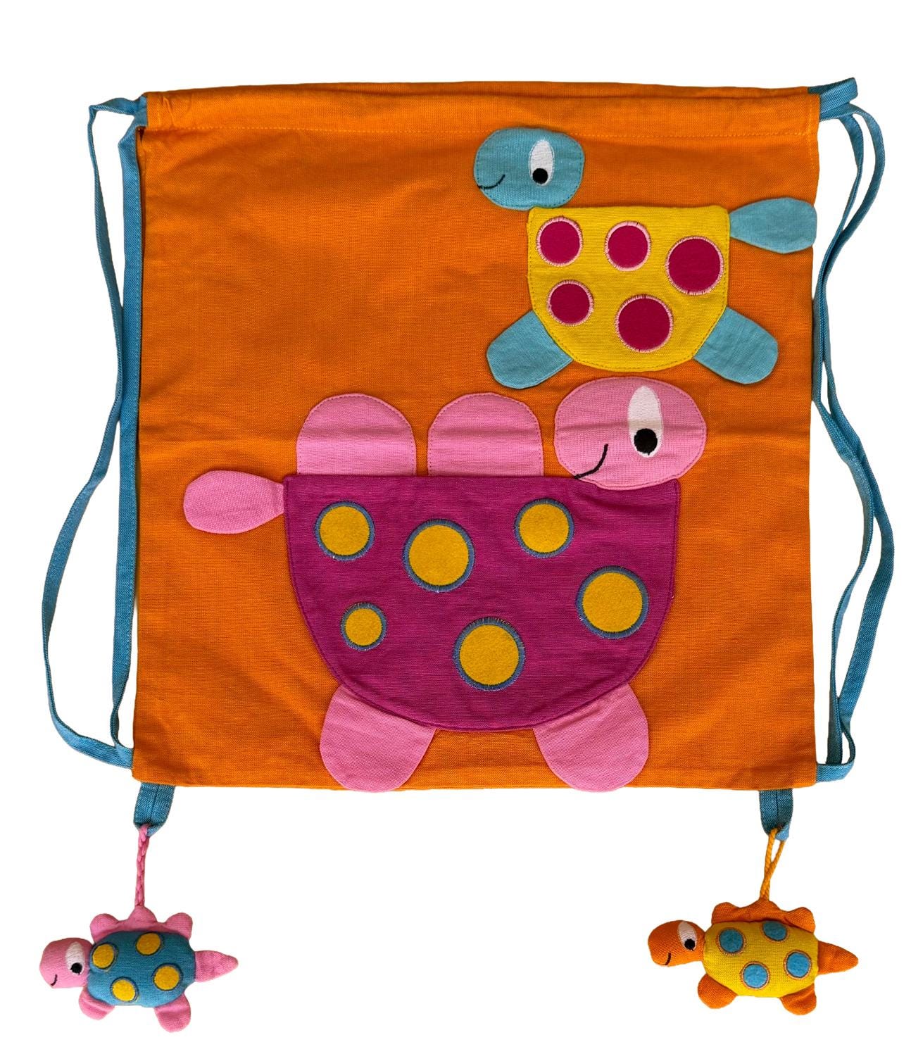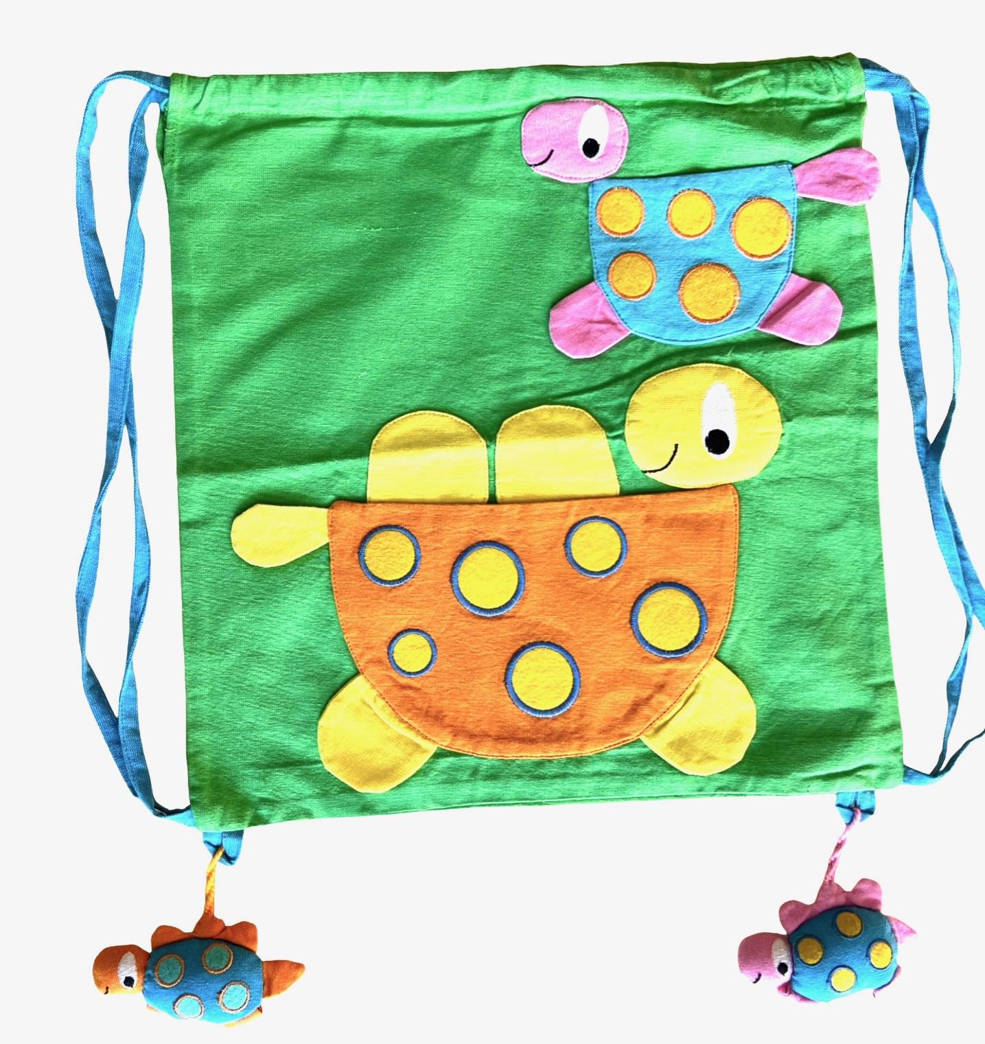 This Hand Made Turtle Draw String Bag / Gym Bag made out of Hand Woven Cotton fabric with cute Turtle đ˘ image and ideal for Children /Toddlers to carry their things..