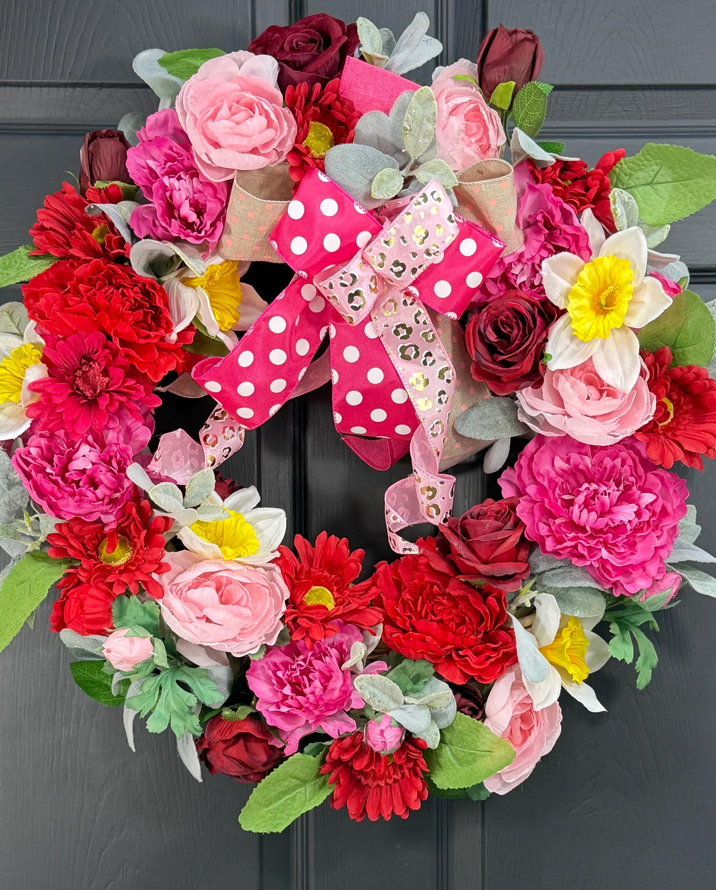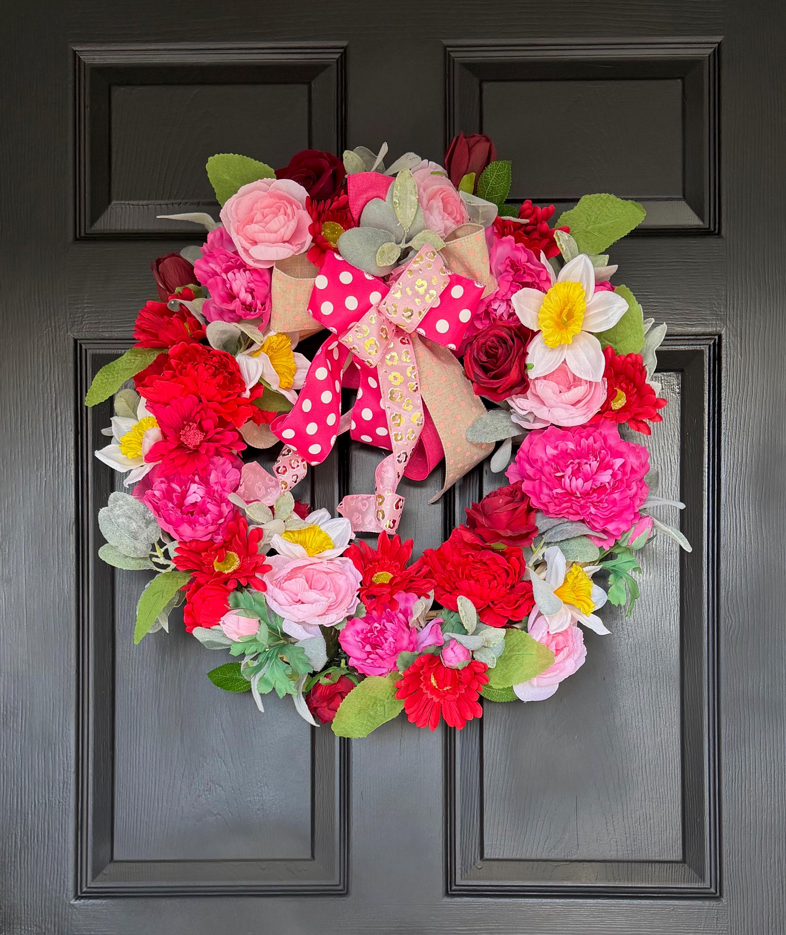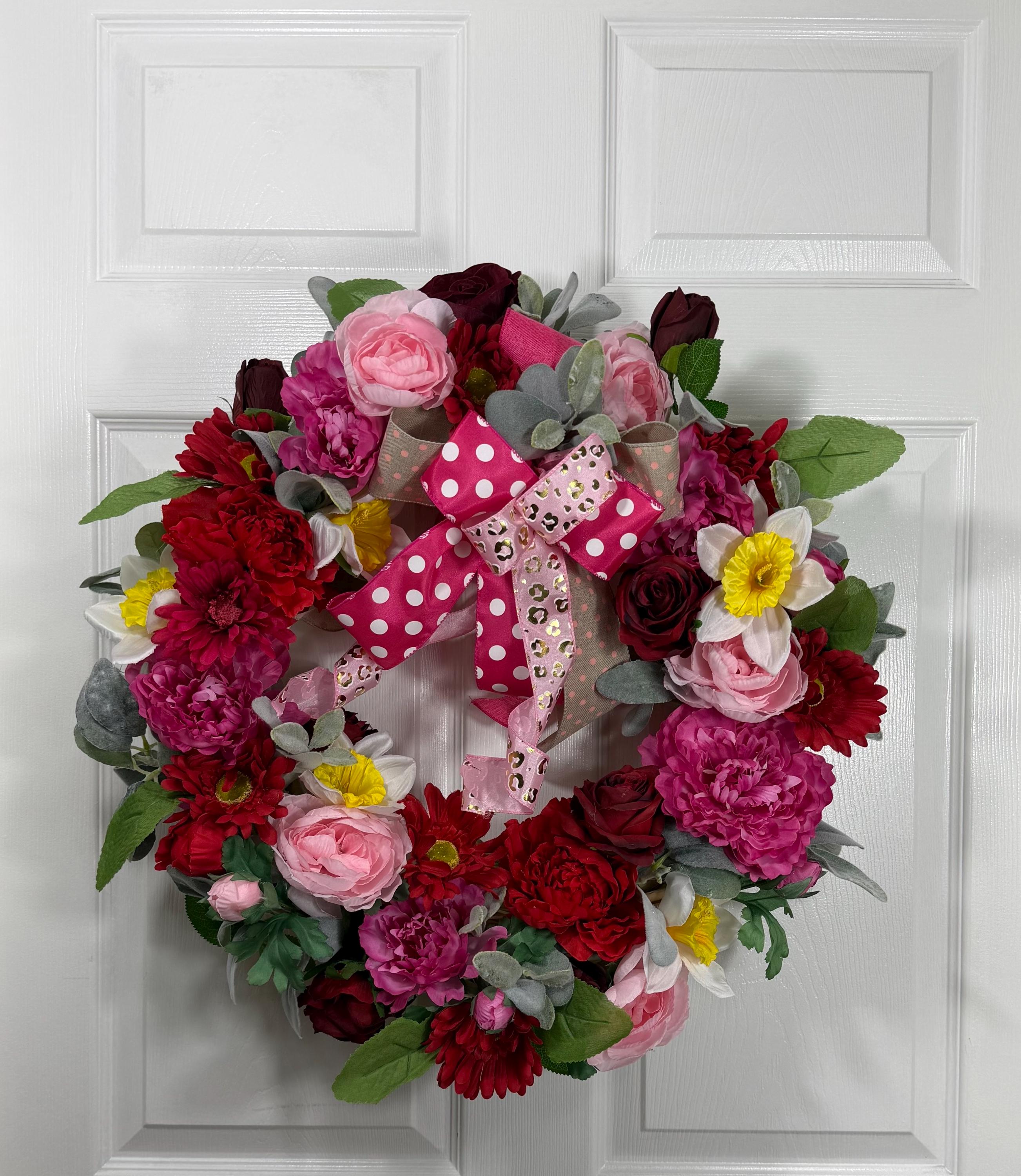 Each wreath is thoughtfully arranged with high-quality materials to ensure lasting beauty and durability. No matter the season, this floral wreath brings a welcoming charm to your space.