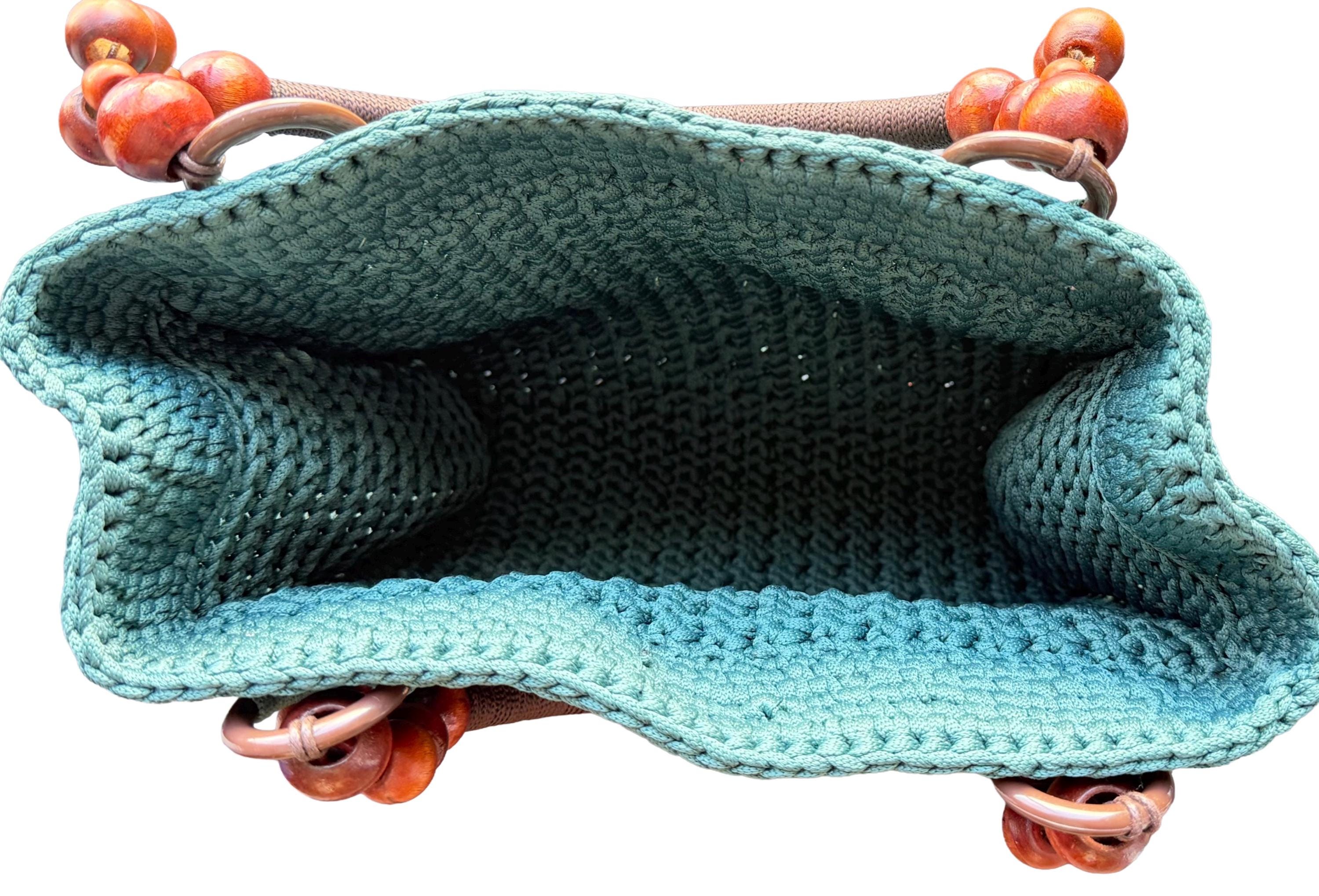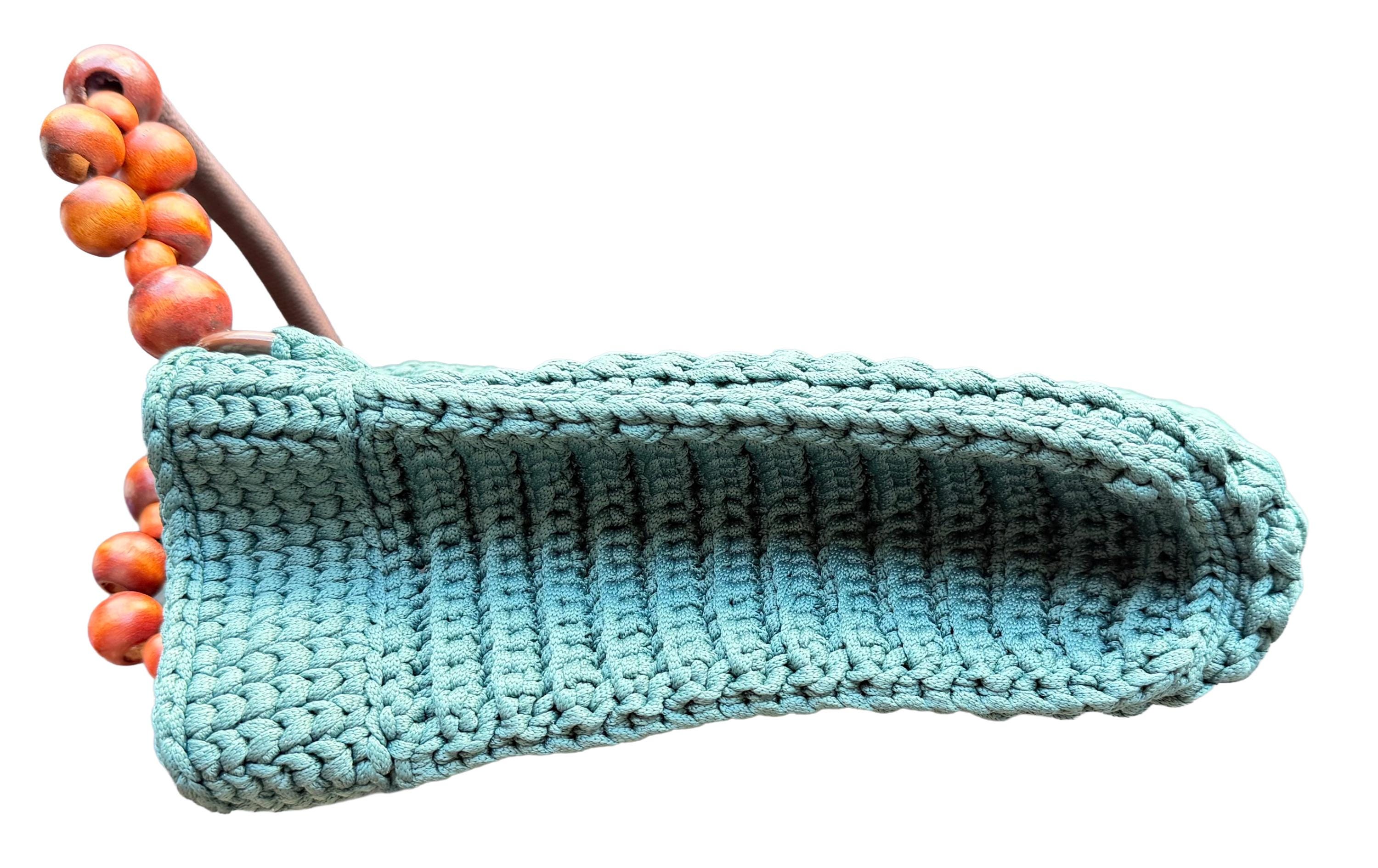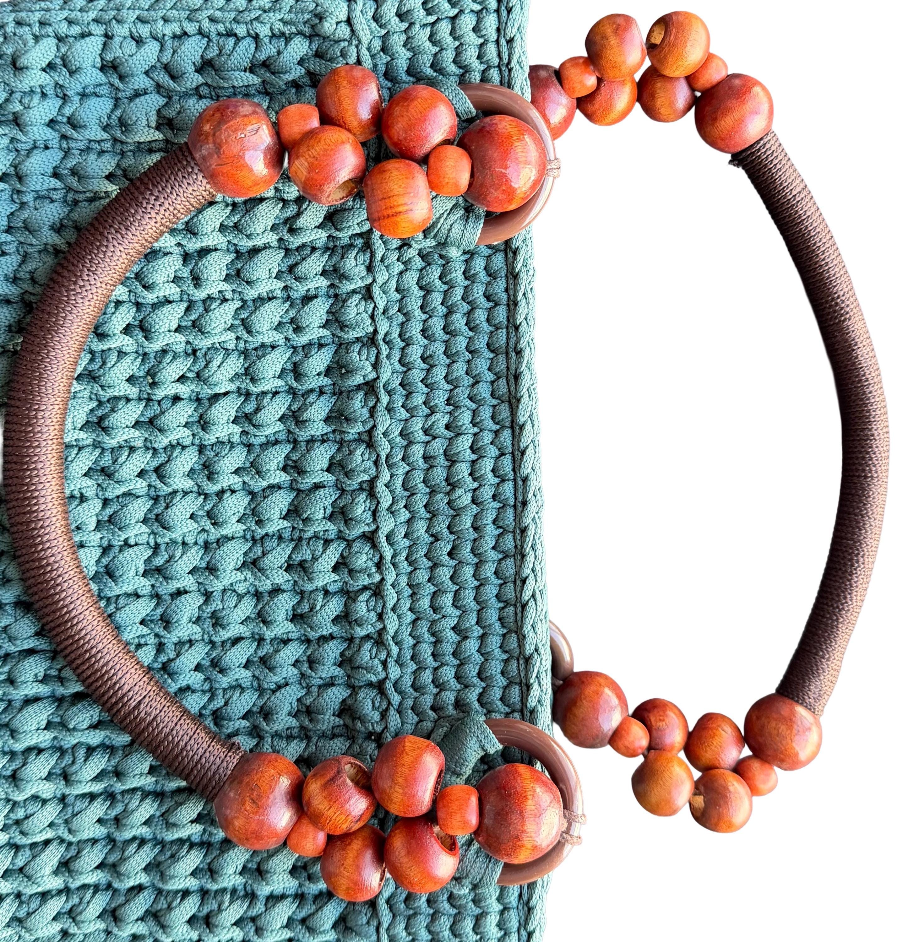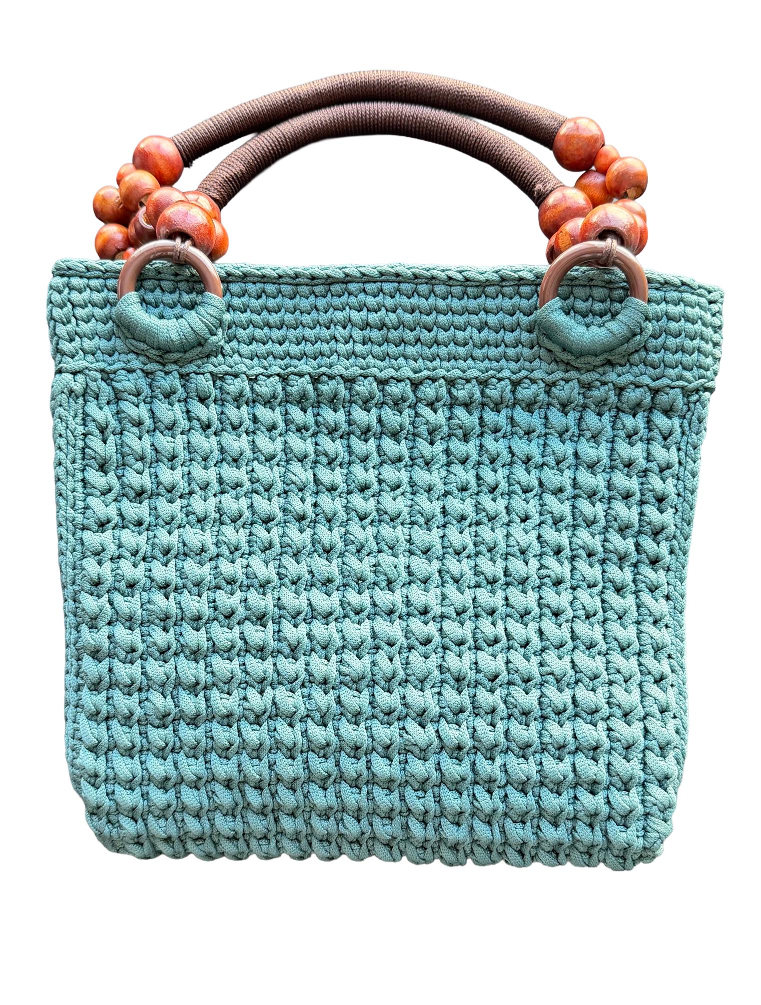 Elevate your everyday style with this exquisite handmade crochet handbag in a refreshing turquoise hue. Meticulously crafted with premium yarn, this hobo-style bag showcases a stunning textured pattern that adds depth and visual interest. The thoughtfully designed wooden bead handles not only provide a comfortable grip but also bring a natural, bohemian touch to the overall aesthetic. Despite its lightweight construction, this bag offers remarkable durability for daily use. The spacious interior provides ample room for your essentials, making it perfect for everything from casual outings to weekend adventures. Each stitch reflects superior craftsmanship, creating a unique accessory that stands out from mass-produced alternatives. The versatile design complements both casual and semi-formal attire, while the timeless turquoise color adds a fresh pop to any outfit. This artisan-made handbag makes a thoughtful gift or a special treat for yourself, combining style, functionality, and artisanal charm in one beautiful package.