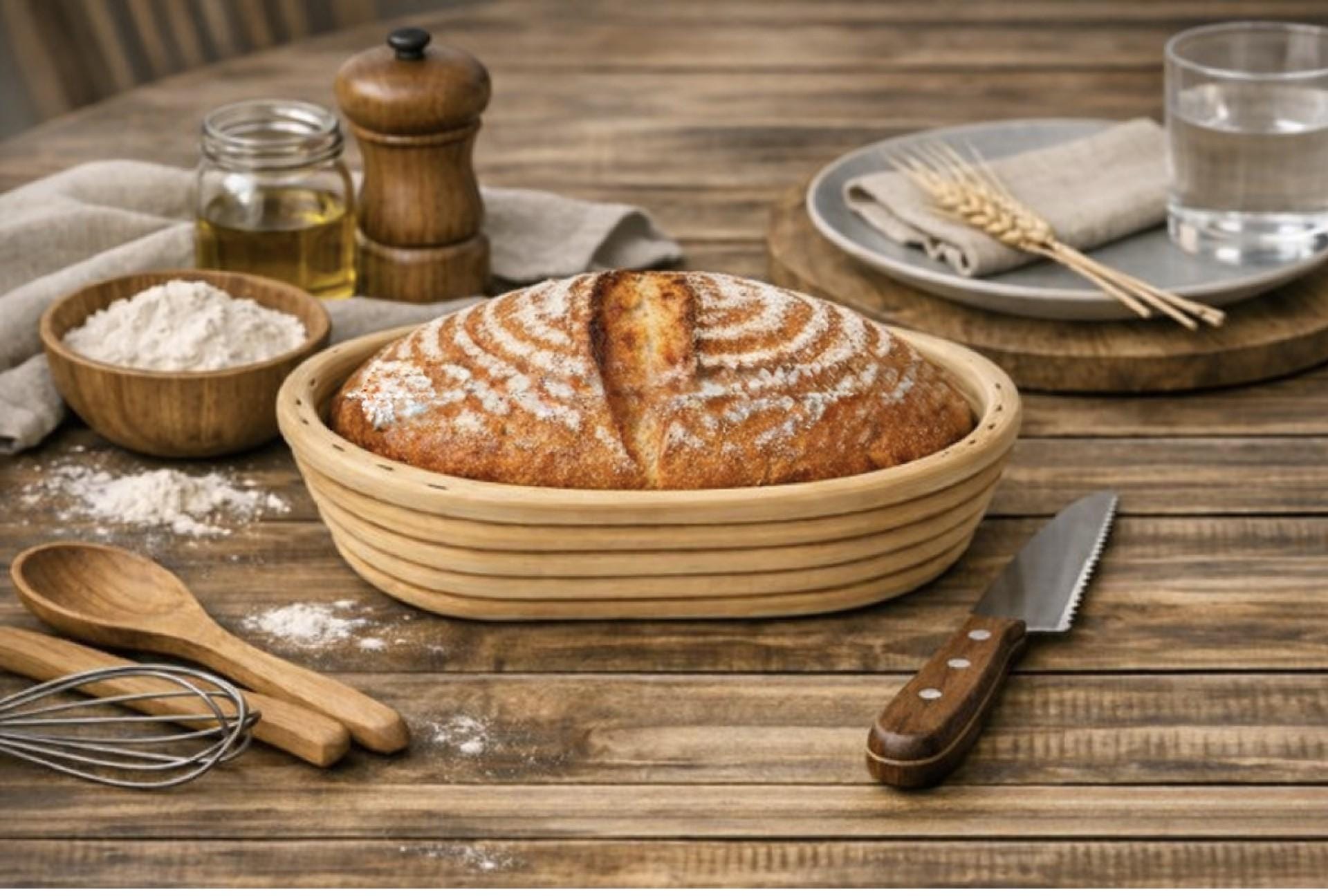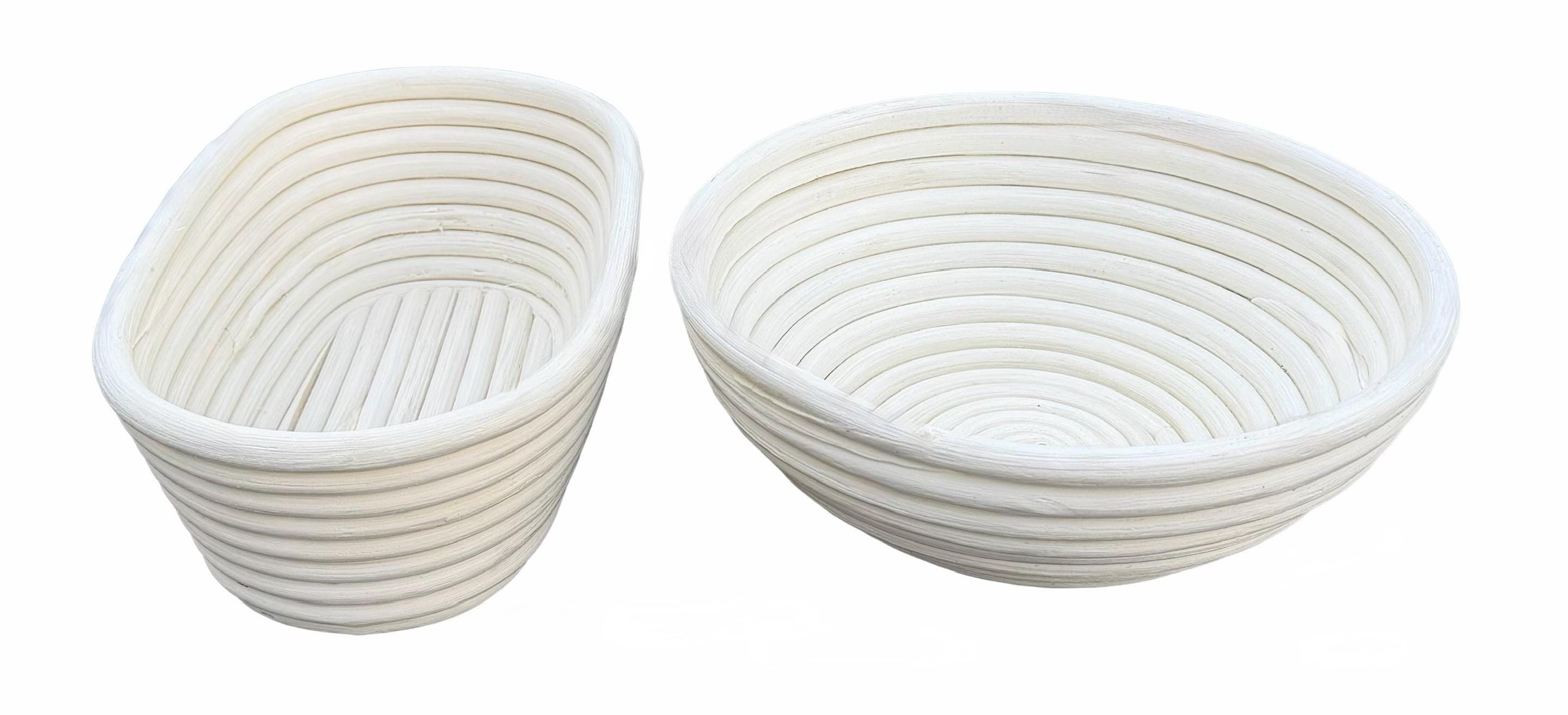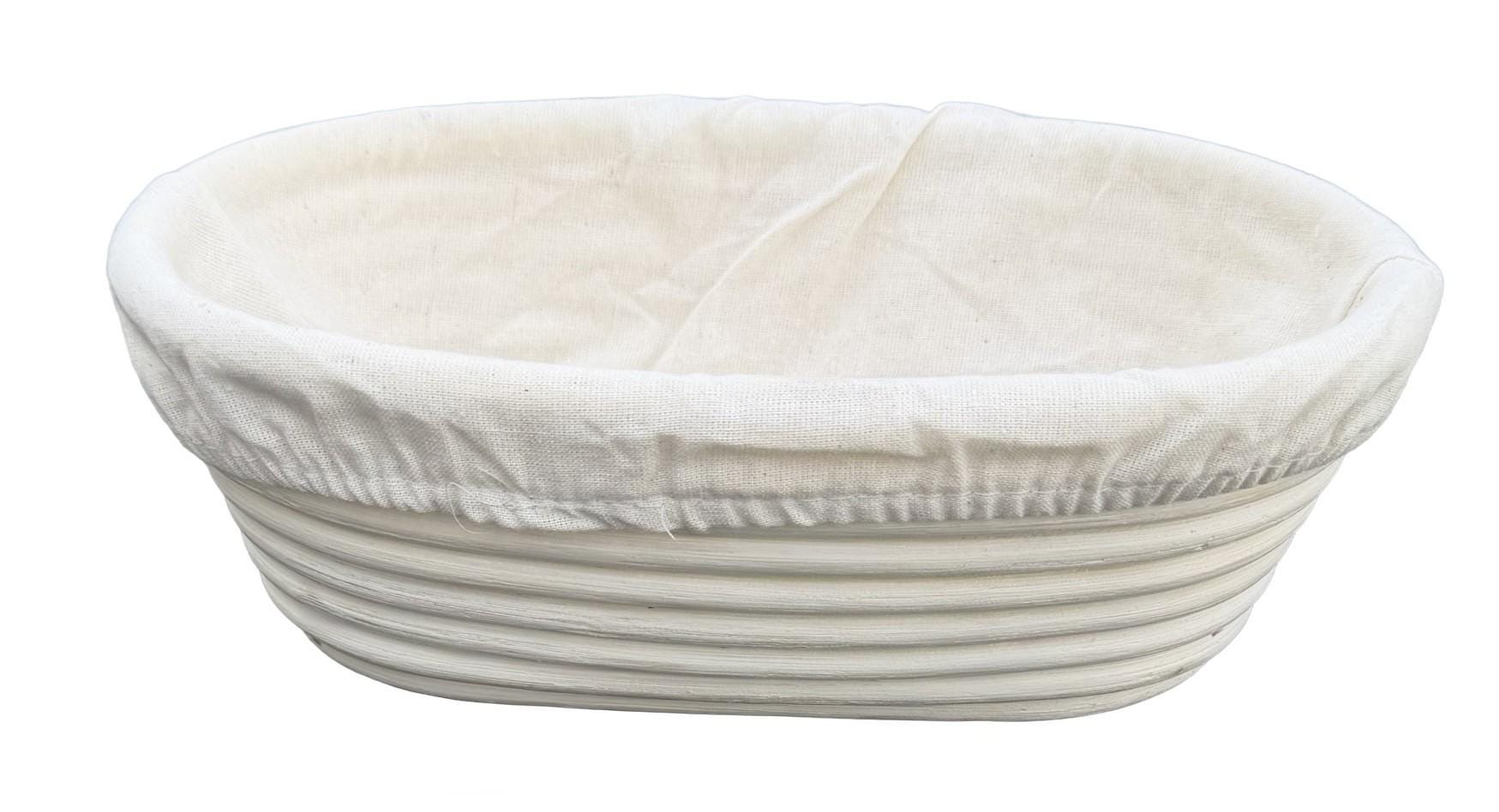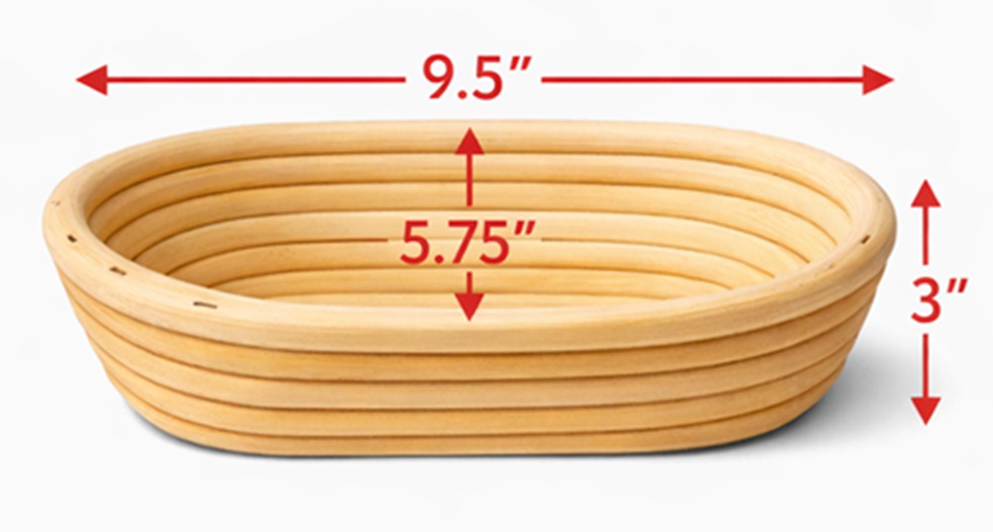Elevate your bread proofing game with these premium Oval-shaped banneton baskets. Perfect for crafting artisan loaves, these traditional proofing baskets create that coveted spiral pattern and develop a lovely crust on your sourdough. The natural cotton liner ensures your dough doesn't stick while allowing it to breathe during the crucial proofing process. The sturdy construction maintains its shape through repeated use, while the classic design adds an authentic touch to your bread-making routine. This 9.5-inch oval bannetons are ideal for 1.5 to 2-pound loaves, giving your bread the perfect rise and shape before baking. Whether you're a seasoned baker or just starting your sourdough journey, these proofing baskets are an essential tool for creating professional-quality bread at home. Hand wash recommended to maintain quality.